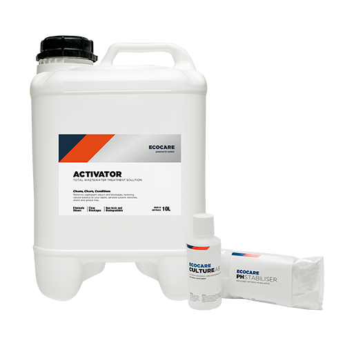 EcoCare Activator and the Enhancer Kit AB will fill your system with the right bacteria to eliminate odours, dissolve blockages and improve performance.