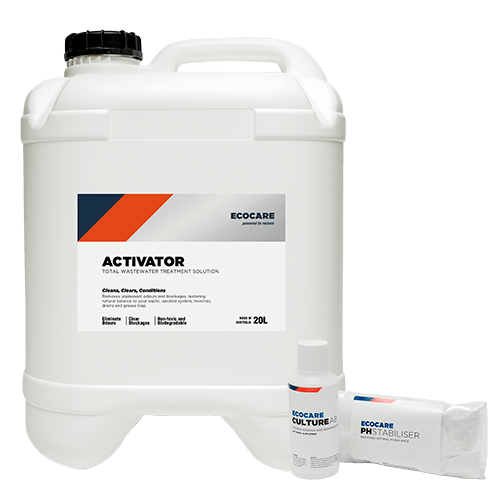 EcoCare Activator and the Enhancer Kit AB will fill your system with the right bacteria to eliminate odours, dissolve blockages and improve performance.